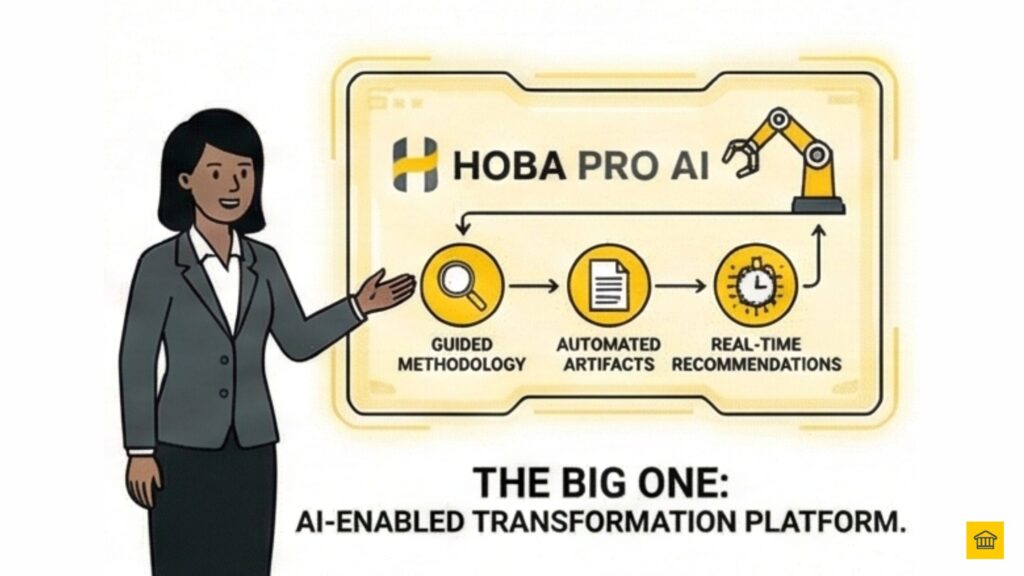 Each release will be a step-change in capability—just as The Business Transformation Playbook disrupted the industry when it was published, HOBA Pro AI will disrupt transformation delivery again.